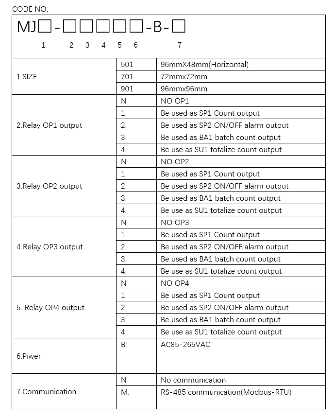 Sp1 normal count output/BA1 batch count output/SU1 totalize countr output